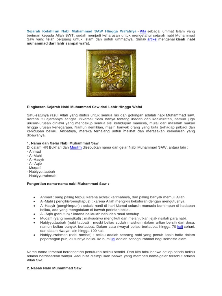 Sejarah kelahiran nabi muhammad saw. Ringkasan sejarah nabi muhammad saw dari lahir hingga wafat. Muhammad memulai penyebaran ajaran islam untuk seluruh umat manusia dan mewariskan pemerintahan tunggal islam. Sejarah kelahiran mulai dari silsilah quraisy sampai lahirnya rasulullah, oleh ustadz dr khalid basalamah, masubscribe!!view lentera islam on:instagram. Setelah 5 tahun dalam asuhan halimah sakdiyah, dengan allah swt memberkahinya sehingga kehidupannya berkecukupan.